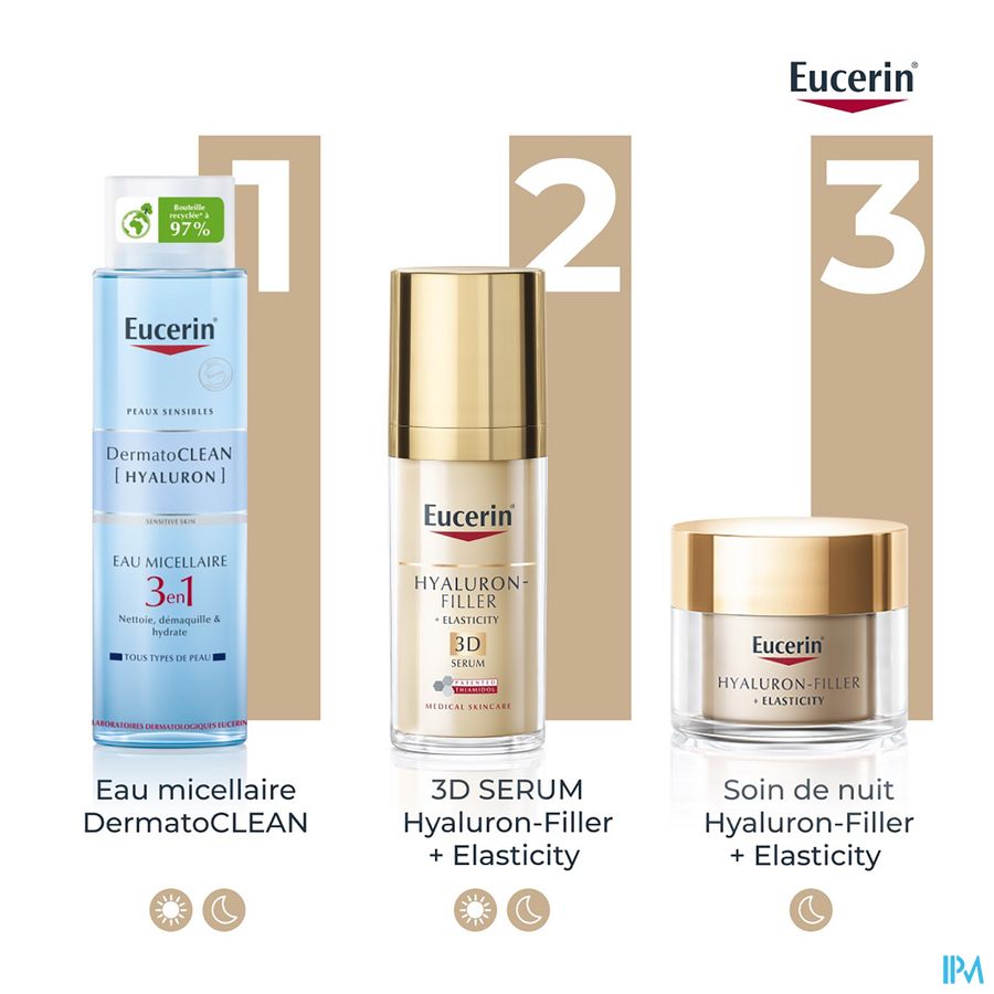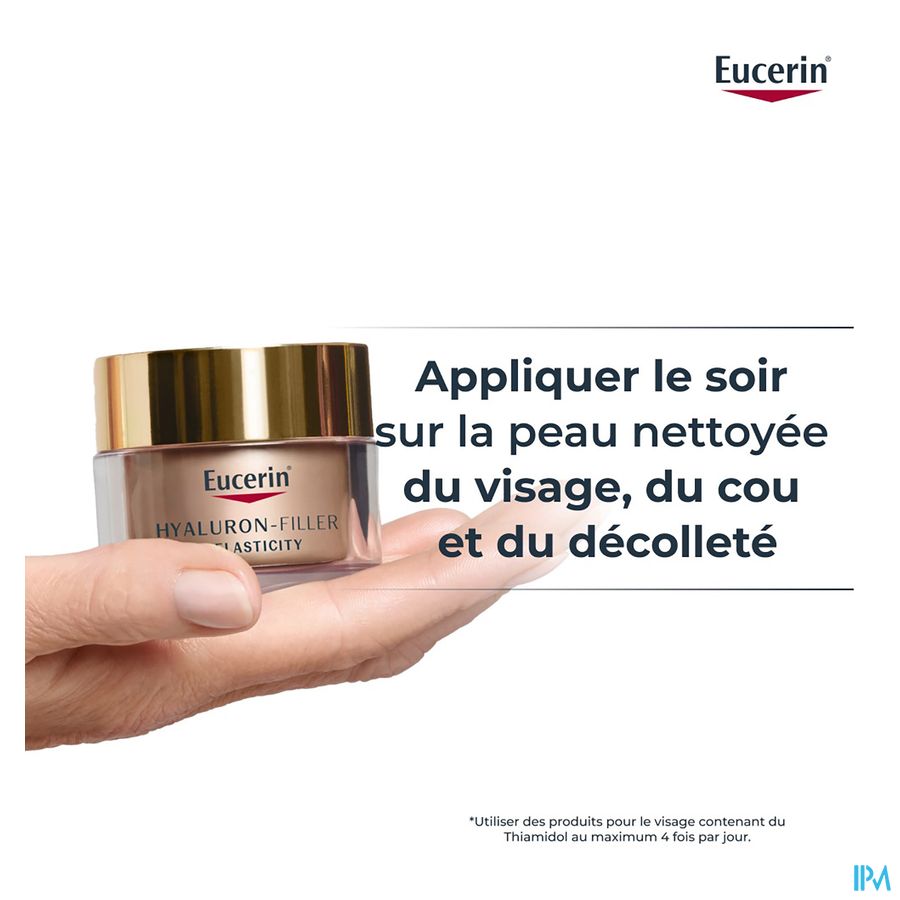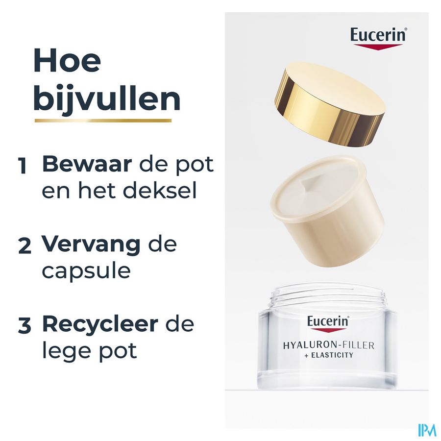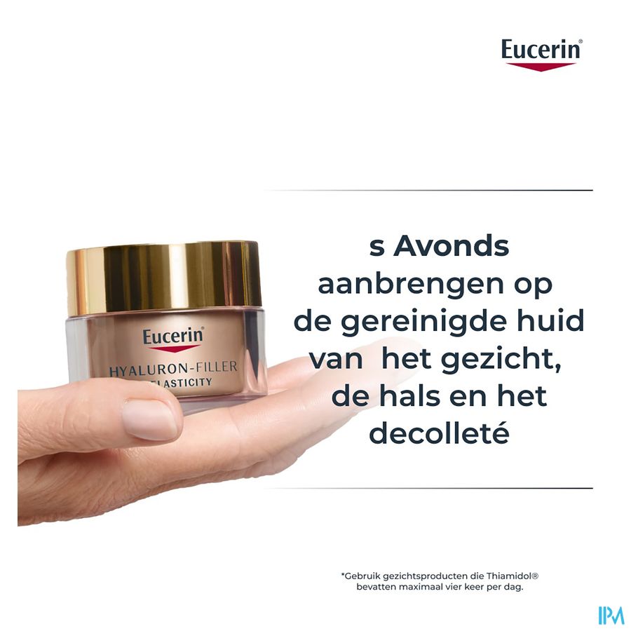Eucerin Hyaluron-Filler + Elasticity nachtverzorging is speciaal samengesteld om de gevorderde tekenen van veroudering te verminderen. De innovatieve nieuwe formule hydrateert de huid intensief, verbetert de elasticiteit en vult zelfs diepe rimpels op.