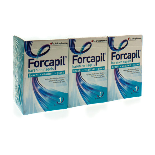 Forcapil bevat een volledige formule met zwavelhoudende aminozuren (cystine en methionine), vitaminen en mineralen. Zink speelt een rol bij de normale synthese van eiwitten โ zoals keratine. Vitamine B8 helpt om het haar gezond, soepel, glanzend en sterk te houden. Zink helpt ook om mooie nagels te behouden. Forcapil is een voedingssupplement bestemd voor personen die mooi haar en mooie nagels willen behouden.