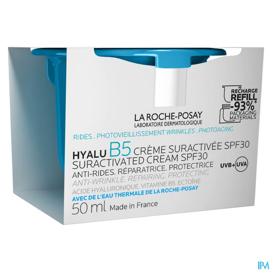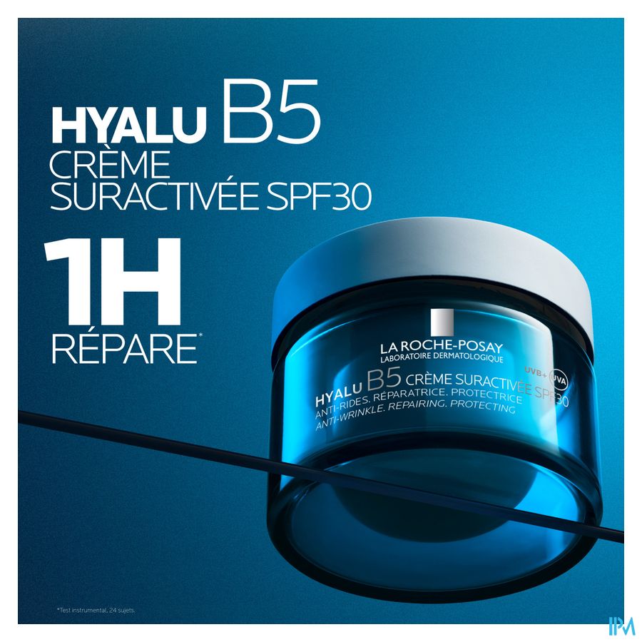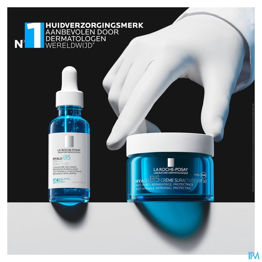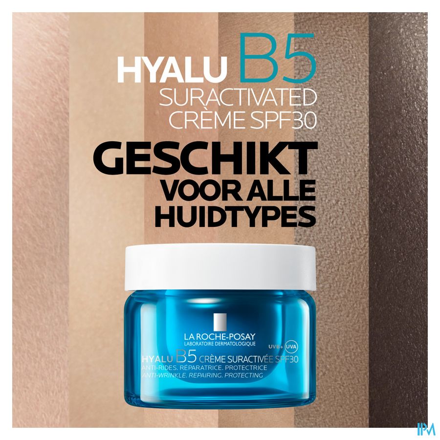 La Roche-Posay Hyalu B5 Suractivated Crรจme SPF 30 is een dagelijkse verstevigende anti-ageing crรจme die huidveroudering zoals rimpels vermindert en de huid beschermt tegen schadelijke UVB- en UVA-stralen. Deze innovatieve formule met SPF 30 helpt de huidbarriรจre al binnen 1 uur* te herstellen en biedt 72 uur intensieve hydratatie*. De formule met hyaluronzuur en vitamine B5 ondersteunt het herstel van de huidbarriรจre, helpt vocht vast te houden en maakt de huid voller, terwijl rimpels zichtbaar verminderen. De crรจme combineert deze effectieve anti-aging eigenschappen met zonbescherming, voor een gehydrateerde, stevigere en gezonder-uitziende huid. * Instrumentele test, 24 personen.