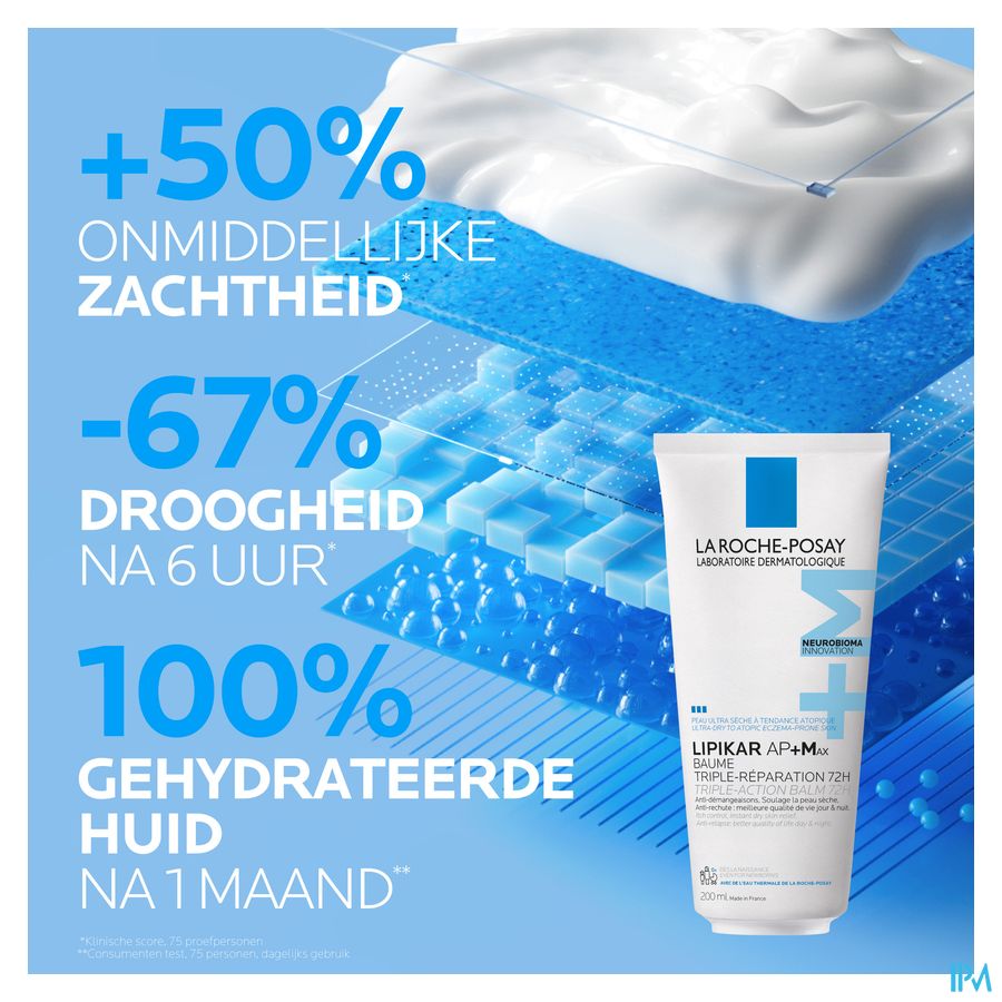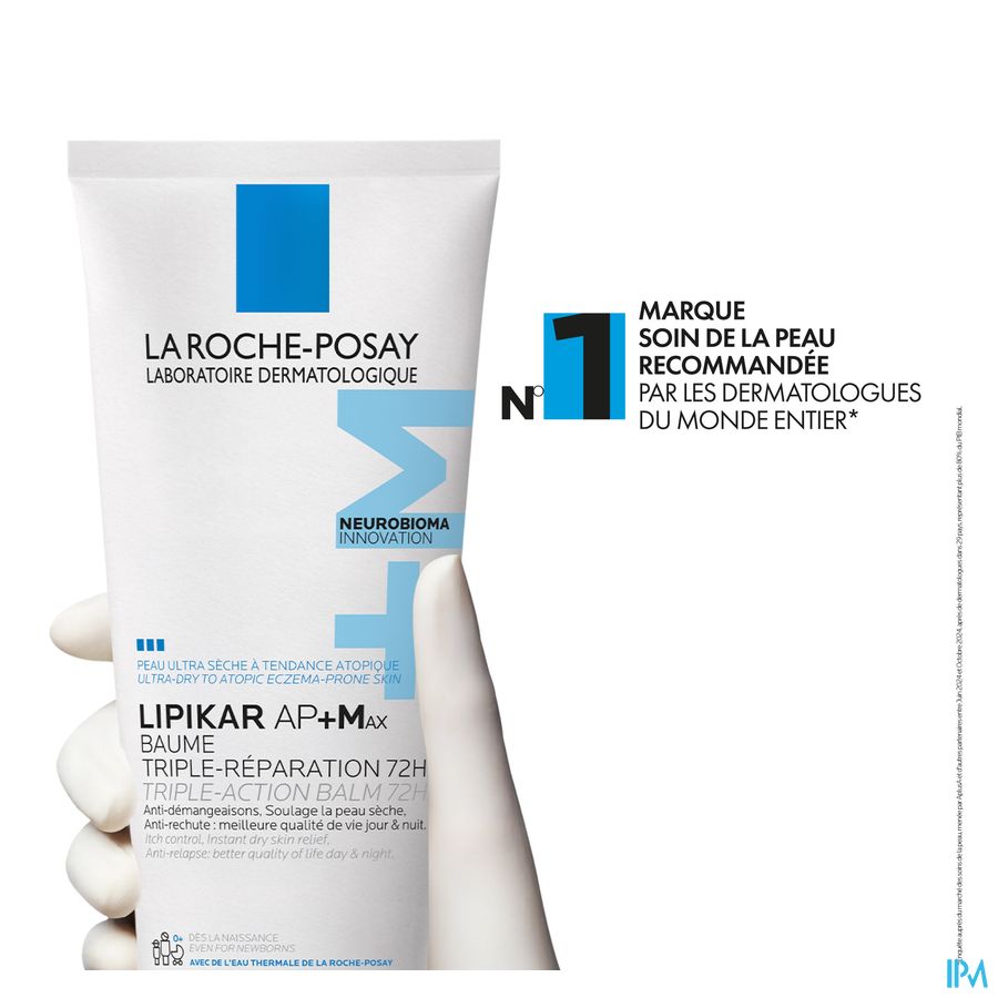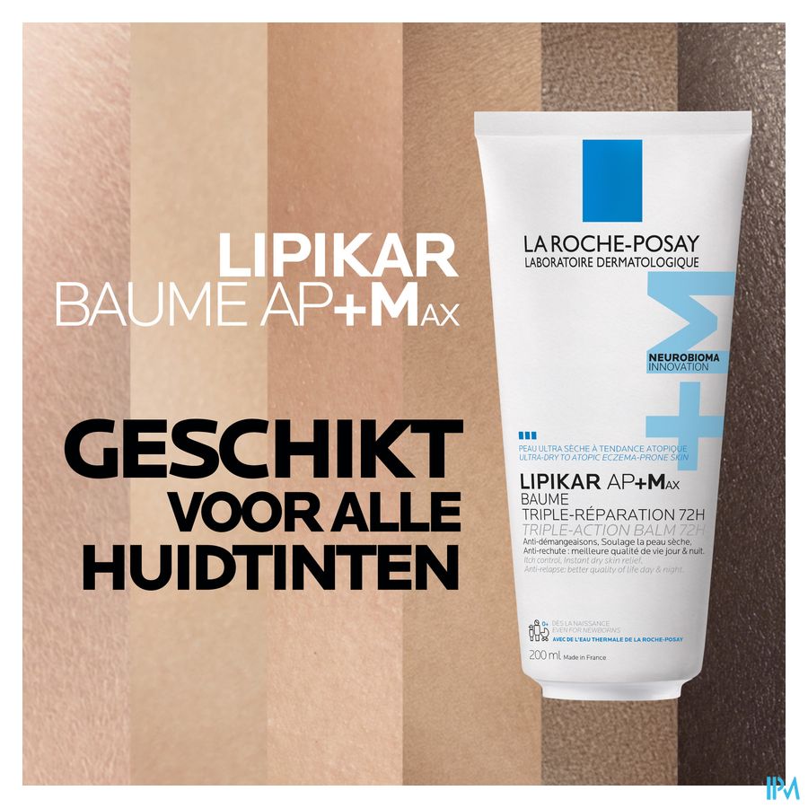La Roche-Posay Lipikar Balsem AP+Max is een nieuwe, drievoudig werkende balsem, specifiek ontwikkeld voor een zeer droge huid met neiging tot atopisch eczeem. Deze geavanceerde formule, verrijkt met voedende Sheaboter, het innovatieve Neurobioma en kalmerende Niacinamide, werkt synergetisch om de huid te helpen herstellen. Het helpt jeuksensaties tot 24 uur lang te verminderen*, voedt intensief en herstelt de huidbarriรจre. Bovendien vermindert het ongemak en roodheid, wat resulteert in een 72u verzachting voor droge huid**. Deze krachtige Lipikar Baume AP+Max is geformuleerd met de hoogste tolerantie in gedachten, waardoor het geschikt is voor een gevoelige huid van pasgeborenen tot volwassenen.