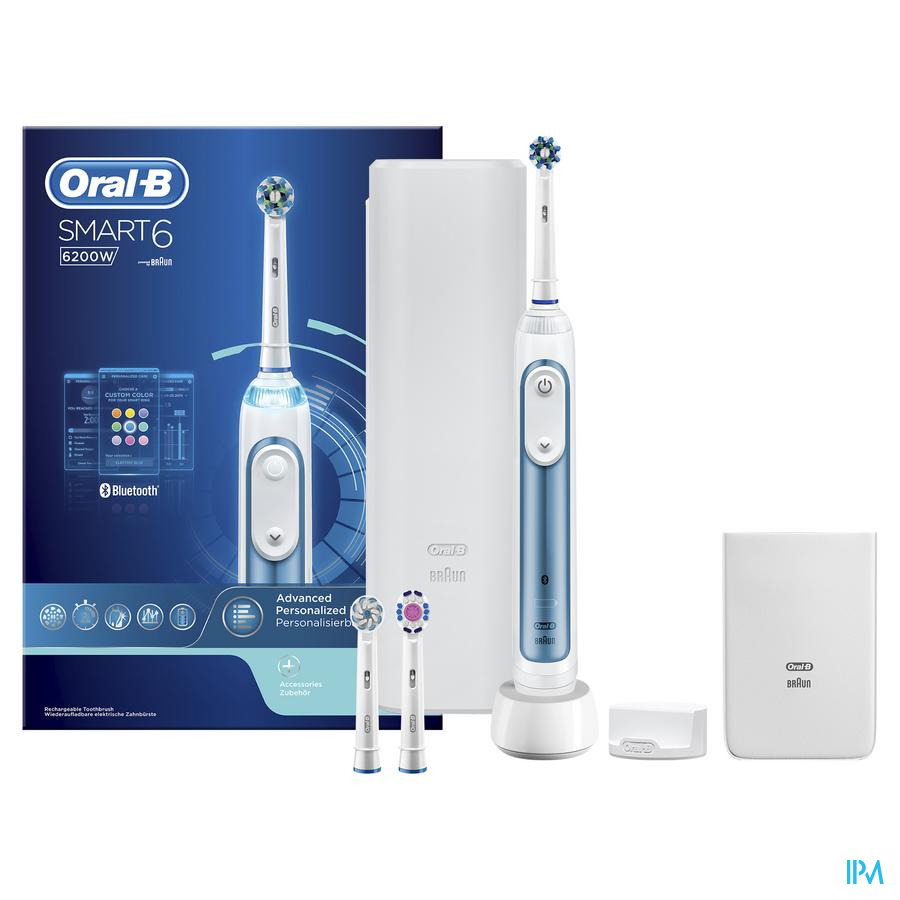 Ervaar Oral-B SMART 6 van het merk dat als eerste kwam met een verbonden oplaadbare tandenborstel. Het slanke handvat van de SMART 6 6000N elektrische tandenborstel verbetert uw poetsgewoontes. Het maakt naadloos verbinding met de Oral-B app op uw telefoon en begeleidt u met realtime feedback om beter te poetsen. U verbetert uw poetsroutine en de unieke, ronde kop van Oral-B doet de rest. Hij verwijdert tot 100% meer plak dan een gewone manuele tandenborstel voor gezonder tandvlees en maakt uw glimlach witter vanaf de eerste poetsdag door oppervlaktevlekken te verwijderen. Dat is niet alles, de tandenborstel helpt u ook uw gevoelige tandvlees te beschermen met de poetsdruksensortechnologie die de poetssnelheid vermindert en u waarschuwt als u te hard poetst. Dankzij de Smart Coaching verbetert u uw poetsgewoontes en uw mondgezondheid. Geen wonder dat Oral-B het nummer รฉรฉn aanbevolen merk door tandartsen wereldwijd is. Past op de volgende vervangende opzetborstels: Cross Action, 3D White, Sensi Ultrathin, Sensitive Clean, Precision Clean, Floss Action, Tri Zone, Dual Clean, Power Tip, Ortho Care.