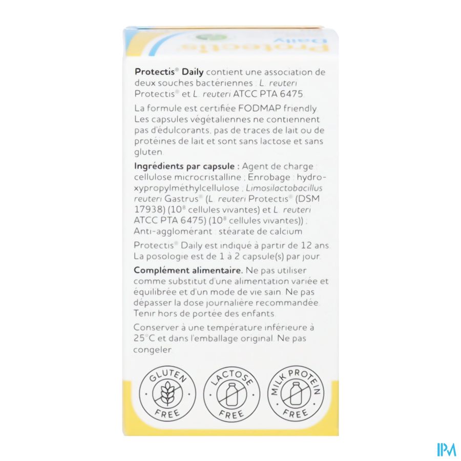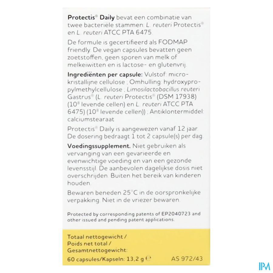 Protectis Daily is een voedingssupplement dat een gepatenteerde combinatie bevat van twee bacteriรซle stammen: L. reuteri Protectis en L. reuteri ATCC PTA 6475.