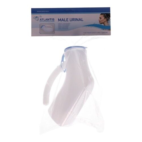 Handige melkwitte urinaal voor mannen. Inclusief maatvoering. Inhoud 1 liter. Voorzien van een sluiting. Urinaal is hittebestendig tot 80Ú C.