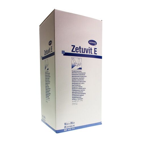 Alle oppervlakkige, matig tot sterk exsuderende wonden, zoals chirurgischewonden of veneuze beenulcera. Kan bij diepe wonden worden gecombineerd met bijvoorbeeld Sorbalgon®. Bij geïnfecteerde wonden dan wel wonden met een hoog infectierisico kan het verband met Atrauman® Ag worden gecombineerd. Zetuvit® E mag niet worden gebruikt voor droge wonden, op blootliggend boten spierweefsel en pezen.